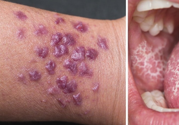 - 💊 Some medications can trigger a similar eruption called a lichenoid drug reaction. Reported triggers include thiazide diuretics, β-blockers, NSAIDs, penicillamine, antimalarials, and some antibiotics.