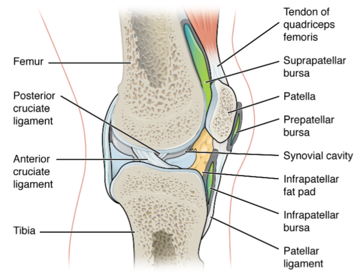 - Patellar ligament – continuation of quadriceps tendon to tibial tuberosity.