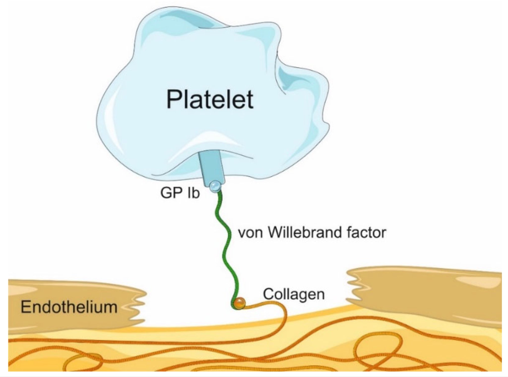 - vWF acts as a "bridge": binds platelets (GpIb) → collagen.