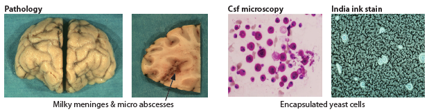 - India Ink: Demonstrates encapsulated yeasts in ~90% of HIV patients.