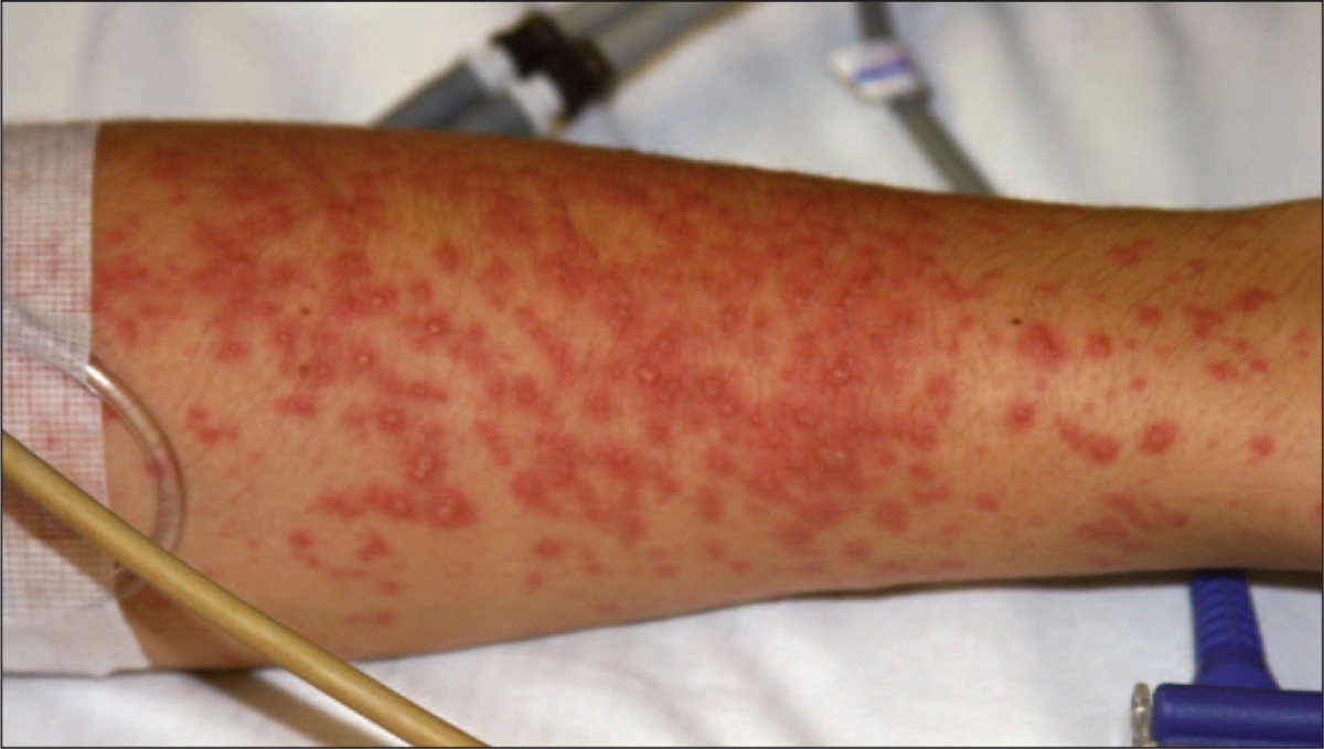 - Prodrome: fever, malaise, myalgia (flu-like).