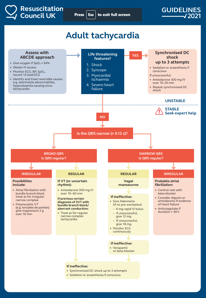 Related Subjects: |Adrenaline/Epinephrine |Atropine |Adult Resus:Acute Anaphylaxis |Adult Resus:Basic Life Support |Adult Resus: Advanced Life Support |Adult Resus: Obstetric Cardiac Arrest |Newborn/Child Resus: All |Acute Hypotension |Cardiogenic shock |Distributive Shock |Hypovolaemic or Haemorrhagic Shock |Obstructive Shock |Septic Shock and Sepsis |Shock (General Assessment) |Toxic Shock Syndrome |Resus:Bradycardia |Resus:Tachycardia |Resus:Hyperkalaemia |Resus:Post Resuscitation Algorithm |Resus:Acute Severe Asthma |Resus:Acute Haemorrhage