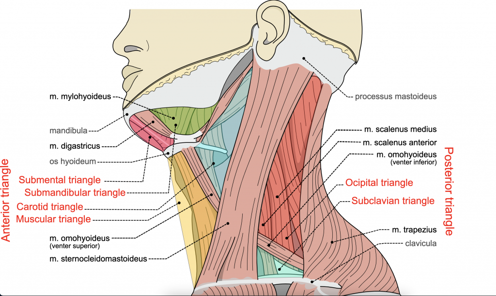 • Carotid Triangle: Carotid artery, IJV, vagus nerve – 💉 common for carotid endarterectomy