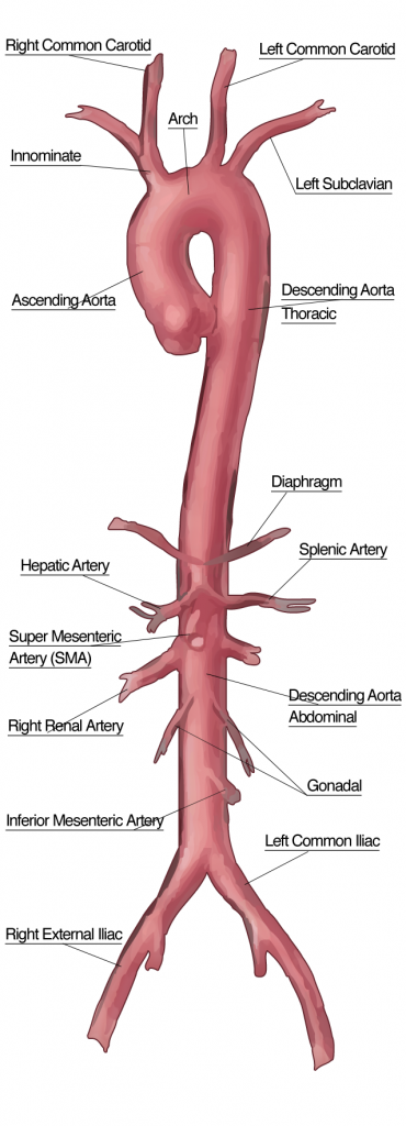 The aorta is the largest artery in the human body, originating from the left ventricle and extending to the abdomen where it divides into the iliac arteries. It is the main highway of oxygenated blood, distributing it to all organs. Its elasticity allows it to maintain constant perfusion during the cardiac cycle. π«