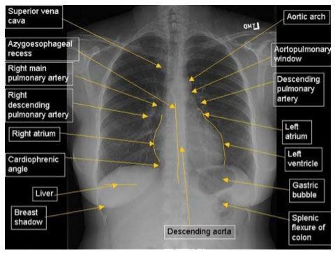 - Retrocardiac: pneumonia, hiatus hernia, vertebral lesions.