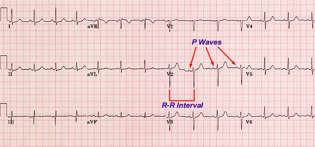Check if the rhythm is regular by confirming a consistent RR interval. Ensure there is a P wave before each QRS complex.
