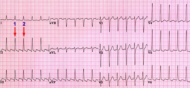 - Prolonged QRS Interval (> 0.12 sec): Indicates bundle branch block or ventricular origin of rhythm (e.g., ventricular tachycardia).