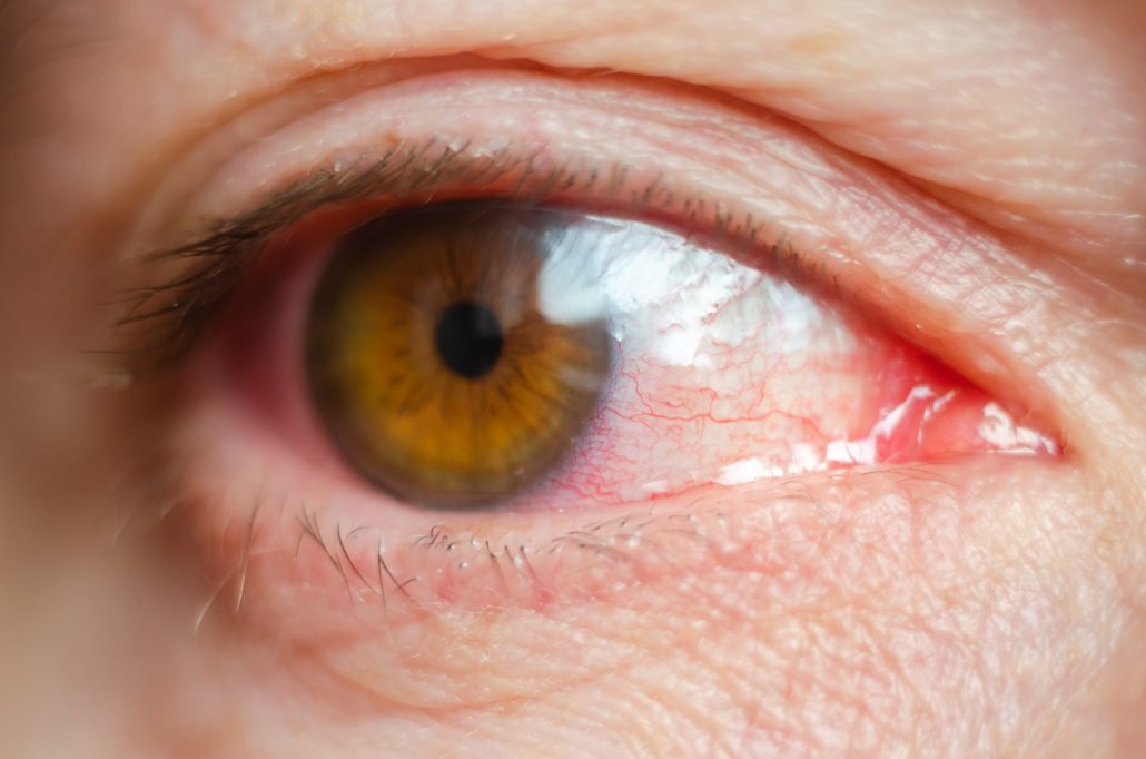 - 👁️ Small pupil (miosis) due to iris spasm.