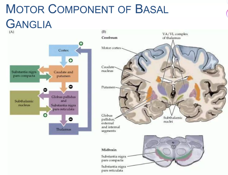 - Motor loop: Motor cortex โ putamen โ GPi โ thalamus โ motor cortex.