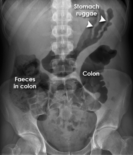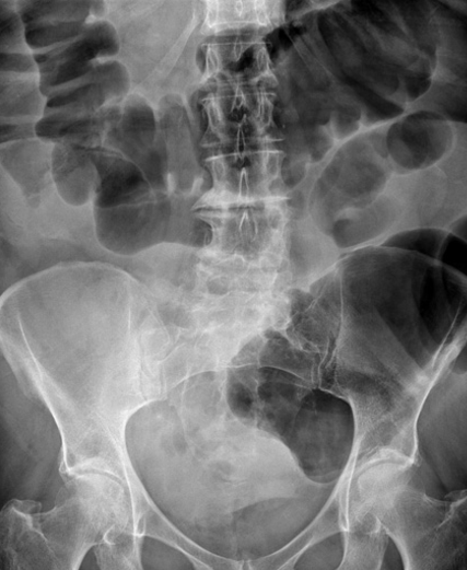 • Supine AP: Standard view, patient on their back – best for obstruction, stones, faecal loading.