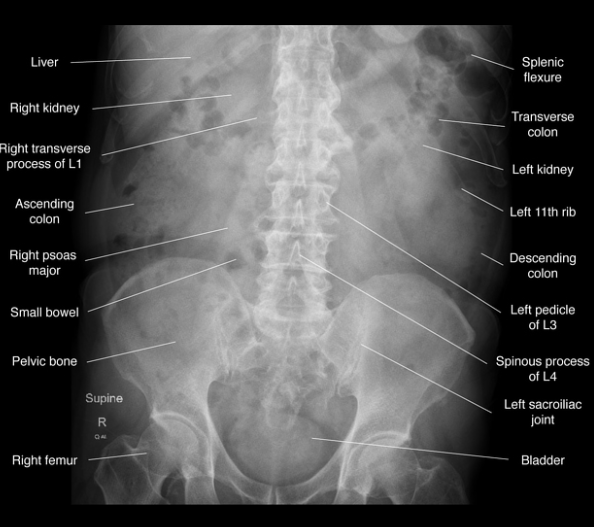 • An Abdominal X-ray (AXR) is a first-line imaging test used in the evaluation of suspected bowel and urological disease.