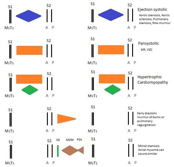 π΅ Systolic murmur | Harsh/blowing/ musical during systole | Auscultate; use maneuvers | Aortic stenosis, Mitral regurgitation, VSD |