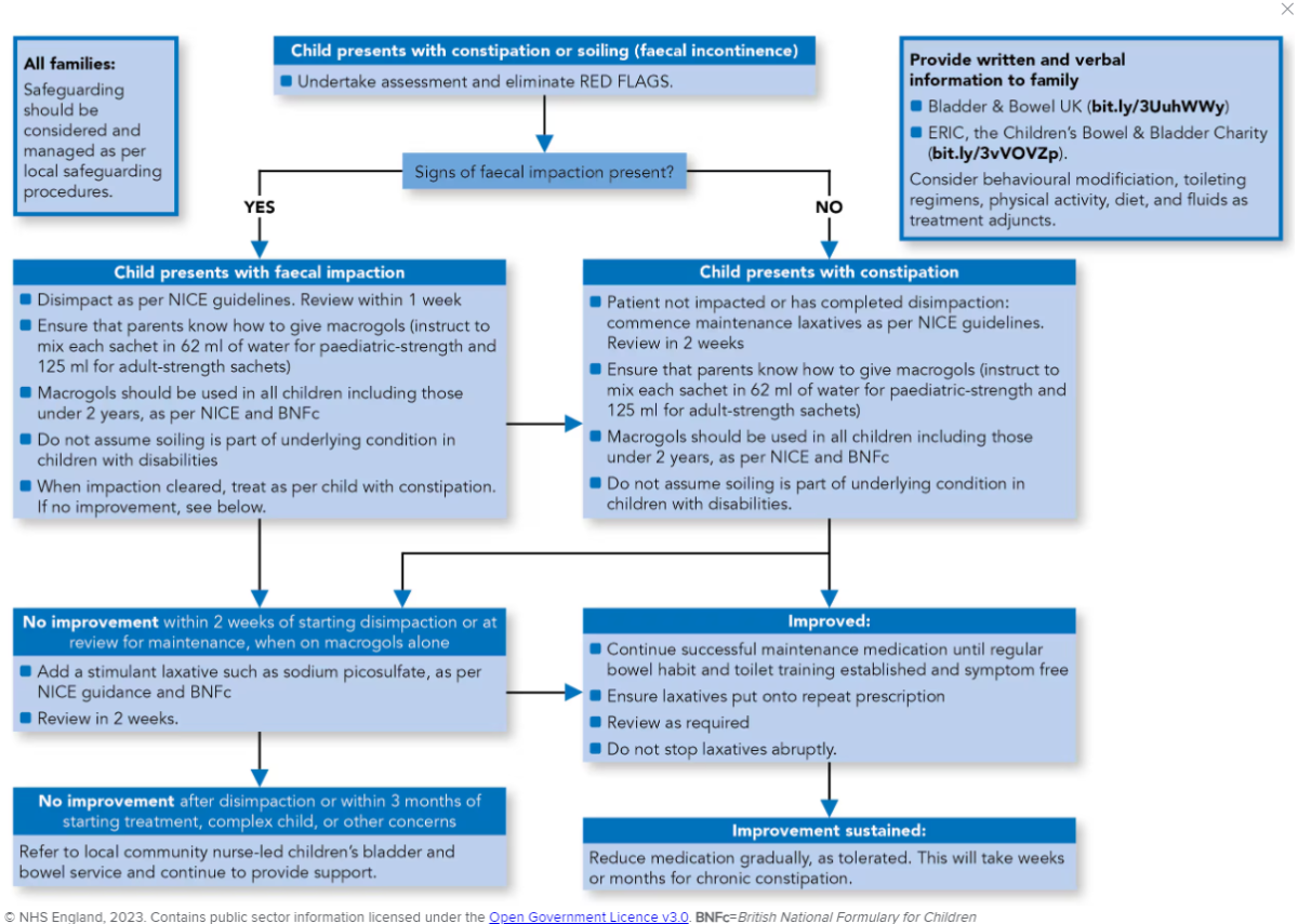 - Parental education to avoid stopping laxatives too early (risk of relapse).