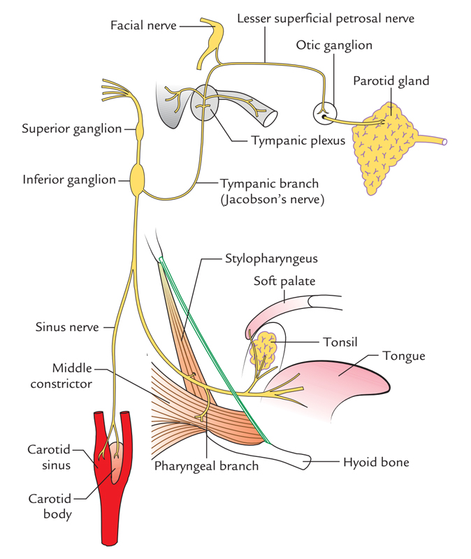 - Provides sensory innervation to the middle ear and contributes to the tympanic plexus.