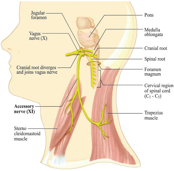 - Cranial part: often best thought of as joining the vagus (CN X) to contribute to palatal/pharyngeal/laryngeal motor function (many modern texts treat this โcranial rootโ as effectively vagal).