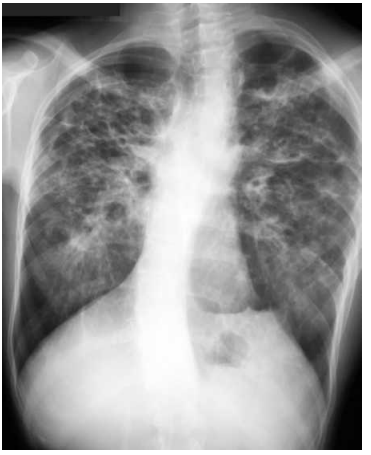 Multiple round pulmonary metastases (renal, choriocarcinoma, thyroid, melanoma).