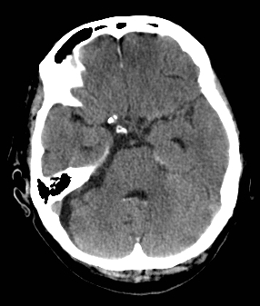 Dense R MCA: Hyperdense MCA sign = acute thrombus.
