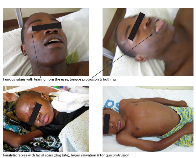 - Encephalitic (furious) rabies (80%):