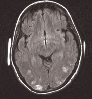 • Symmetric vasogenic oedema in posterior regions (parieto-occipital lobes) on MRI FLAIR/T2.