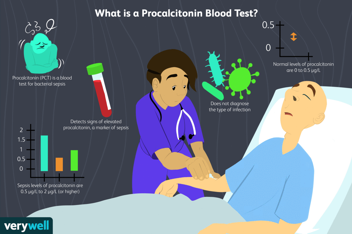 Procalcitonin (PCT) is the 116–amino-acid precursor of calcitonin. In health, it is produced in thyroid C-cells and rapidly cleaved, so circulating levels are negligible. In systemic bacterial infection, however, PCT is synthesised ubiquitously by parenchymal tissues (lung, liver, kidney, adipose), making it a useful biomarker of bacterial-driven inflammation.