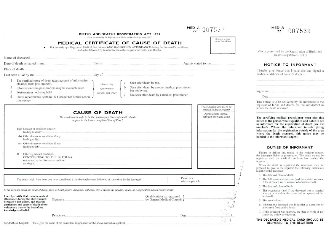 - It is always wise to get the bereavement office staff to check the form for any simple errors.