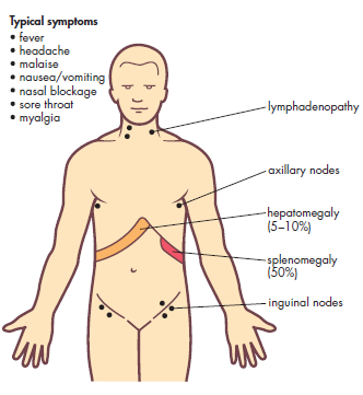- Most cases present in teenagers or young adults (โkissing diseaseโ).